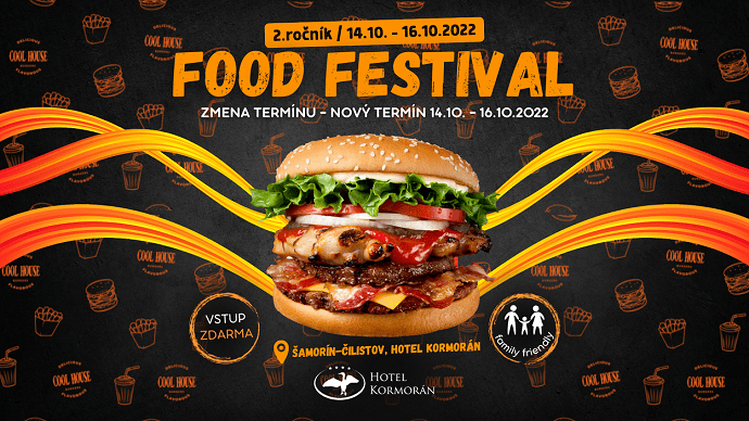 Poďme si spoločne užiť krásny víkend v príjemnom prostredí areálu Hotela Kormorán****, čaká vás víkend plný zábavy, dobrého jedla a bohatého programu na FOOD FESTIVALE! 2. ročník tohto festivalu odštartujeme ako sa patrí, a preto VÁS gurmánsky zážitok neminie. Každý si príde na svoje pri bohatom výbere kvalitného jedla, ktoré zapijeme dúškom osviežujúceho piva.