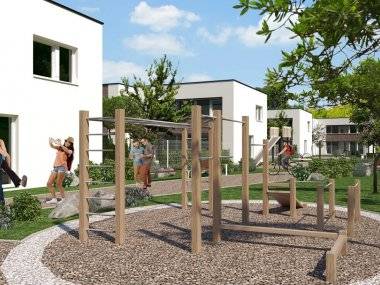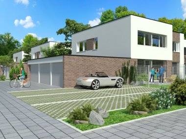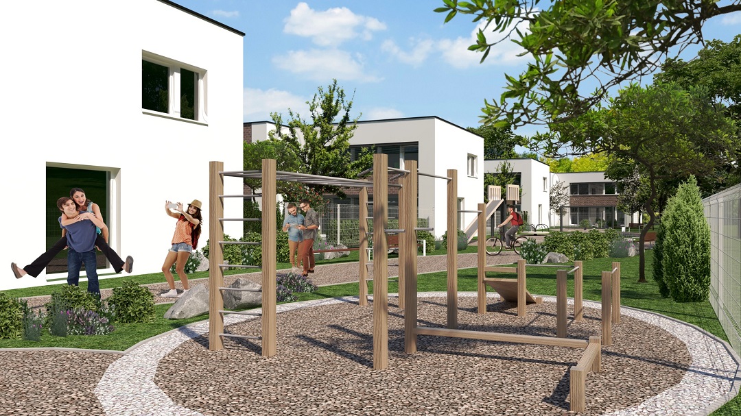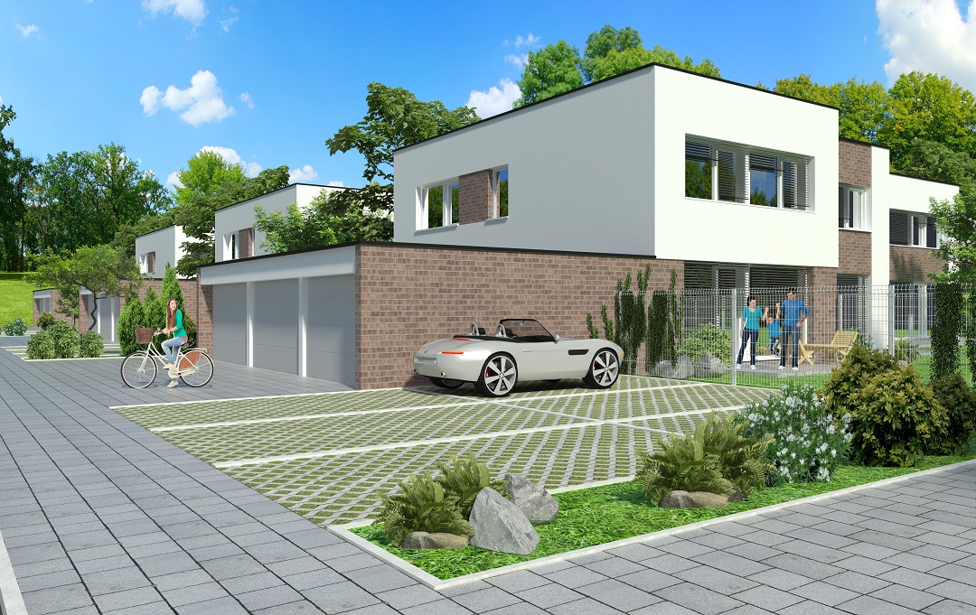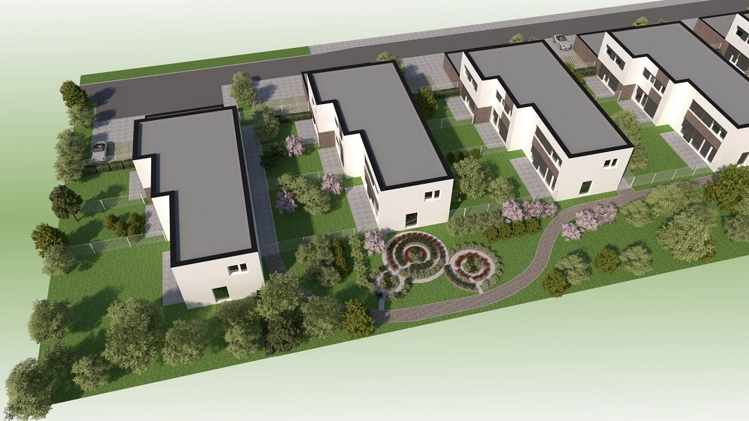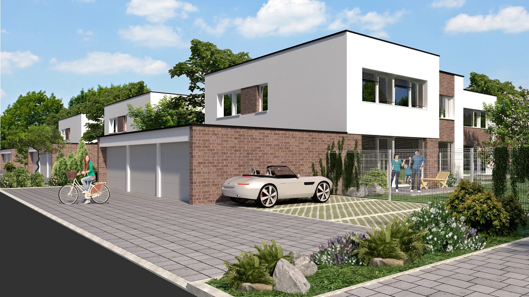 V každom dome sú len 3 byty s vlastným dvorom a prístupom ku komunitnému parku, bez nutnosti vyjsť z areálu či prejsť cez cestu. Každý byt obsahuje vlastnú garáž a 2 parkovacie miesta. Na prízemí v kontakte s vlastným domom je situovaná denná časť s obývacou izbou a kuchyňou.