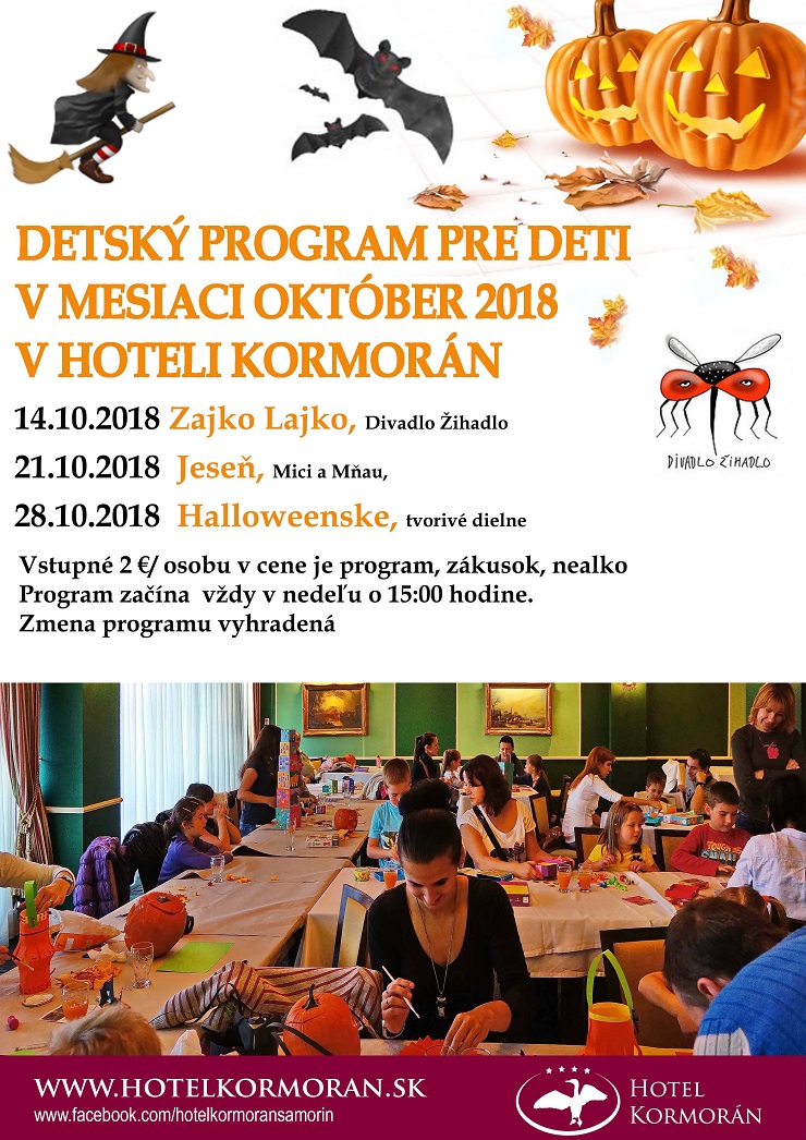 Milé deti pozývame vás na detské divadielko Mici a Mňau, ktoré sa uskutoční 21.10. nedeľu o 15:00 v Hoteli Kormorán.