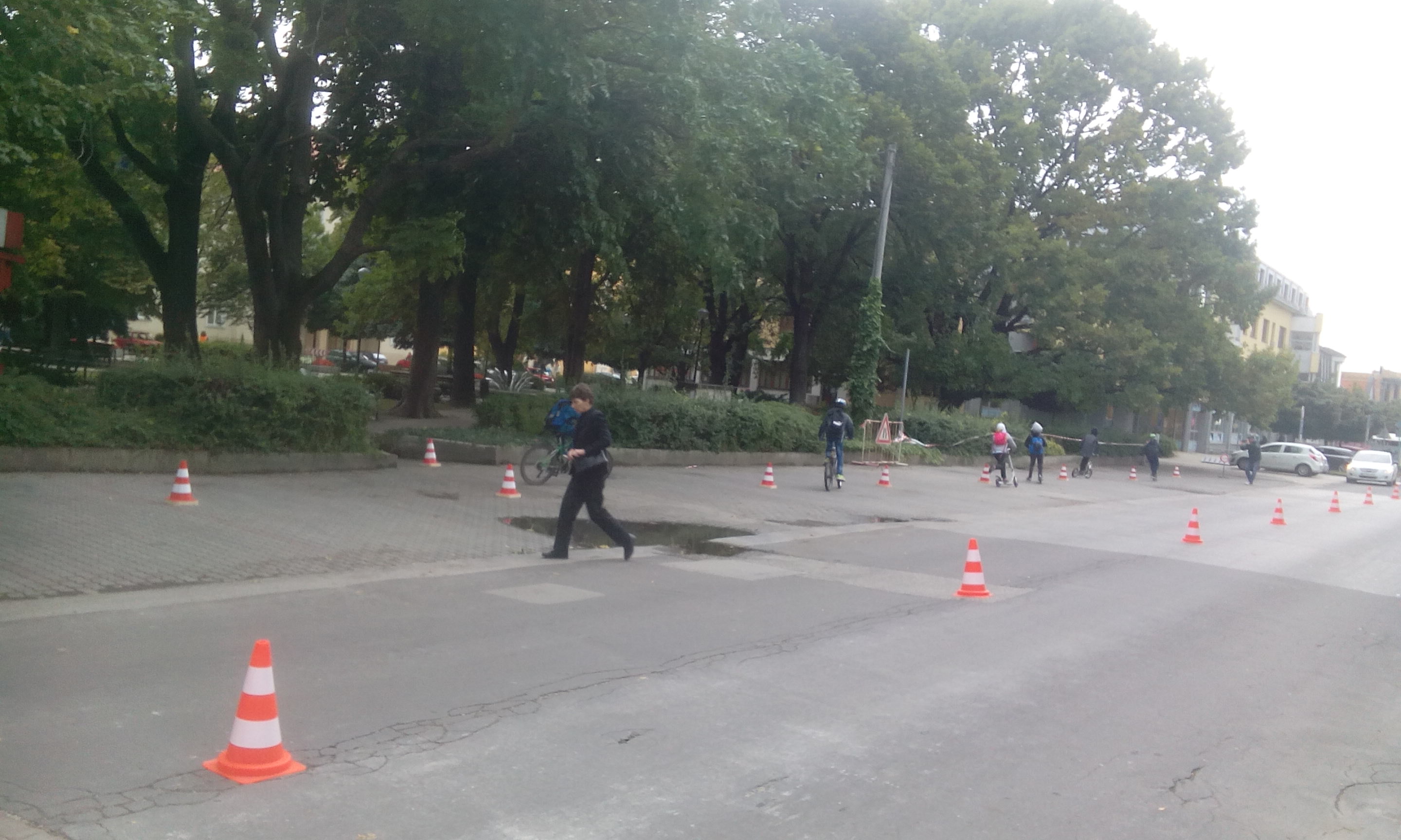 Dnes od 9:00h do 12:00h bol uzavretý jeden jazdný pruh na Gazdovskom rade pri Hlavnom námestí, totiž v rámci Európskeho týždňa mobility (od 18. do 22. septembra 2017) naše deti sa zúčastnili výchovno-vzdelávacej akcii zameranej na testovanie a prehĺbenie poznatkov žiakov o pravidlách cestnej premávky.