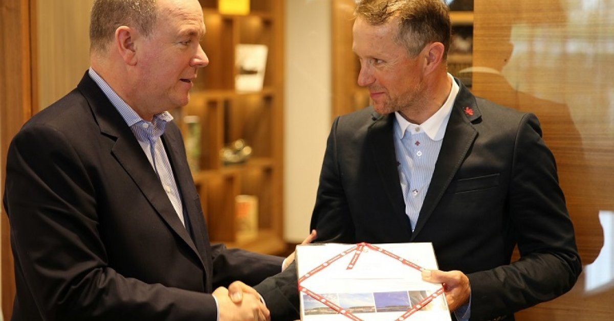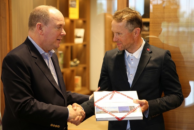 Monacké knieža je predsedom niekoľkých monackých športových organizácií – federácie plávania, jachtárskeho klubu, atletickej federácie, federácie moderného päťboja. Predstavitelia x-bionic® sphere Mario Hoffmann – autor myšlienky, Richard Ungerhofer a Juraj Bača spolu s Prezidentom slovenského olympijského výboru Antonom Siekelom a členkou komisie športovcov MOV Dankou Bartekovou mu predstavili športoviská vrátane Gymnastickej haly a Gym, v ktorých práve trénovali športovci klubov. Delegácia pokračovala prehliadkou atletického štadióna a futbalového ihriska, na ktorom sa aktuálne pripravovali futbalisti na víkendový zápas.