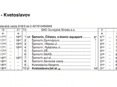 - autobusová stanica – nástupište č. 4.