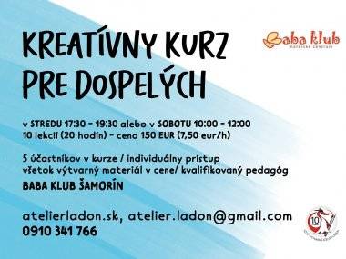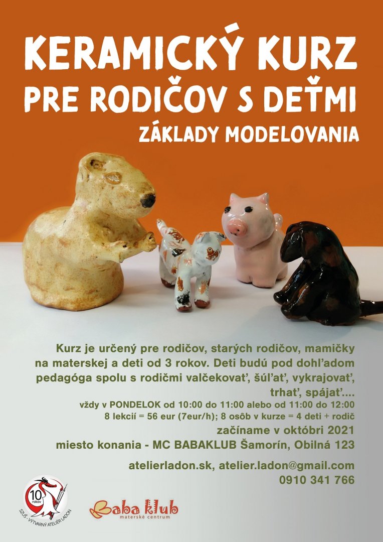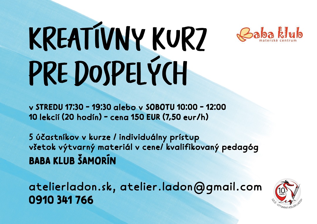 Pre všetkých záujemcov otvára Baba Klub v Šamoríne od októbra nové kurzy. Kreatívny kurz pre dospelých je určený všetkým, ktorí si chcú rozvíjať svoju kreativitu pod dohľadom skúseného pedagóga. Deti od 3 rokov, mamičky alebo starí rodičia sa môžu naučiť základy modelovania v ďalšom otváranom kurze. Tešíme sa na vás.
