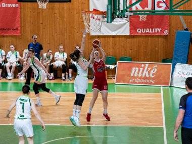 Po vyše mesačnej súťažnej prestávke vstúpili naše basketbalistky do úvodných súbojov play-off NIKÉ Extraligy žien víťazne. Bol to veľmi ťažký zápas, ale hlavne vynikajúcou treťou štvrtinou, ktorú sme vyhrali 23-5 sa nám podarilo zabodovať.