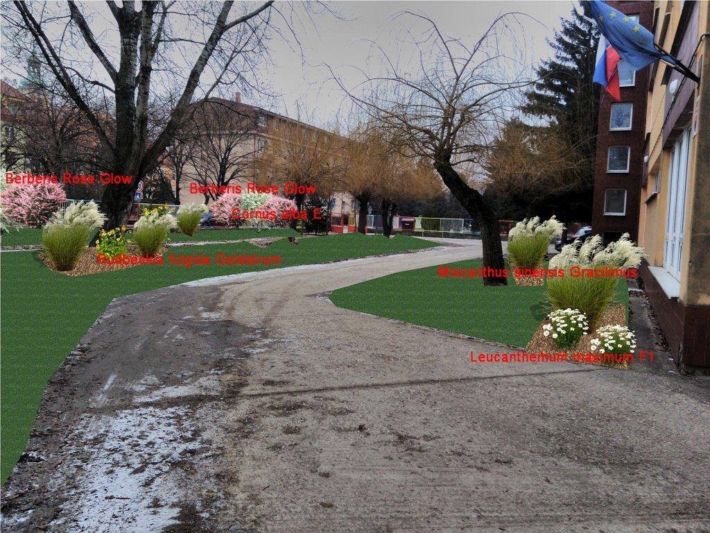 Časť školského areálu dnes a v obrázkovej galérii si môžete pozrieť návrhy na jeho kultiváciu.