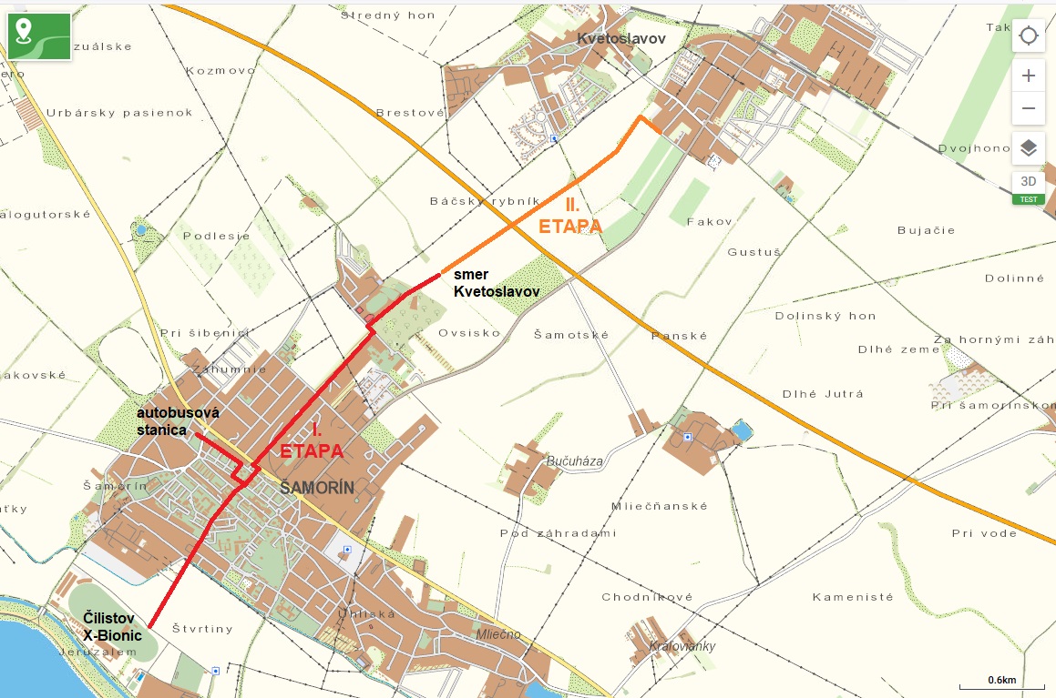 Vďaka tomuto projektu bude mať mesto Šamorín od Dubovej ulice až po Školskú ulicu približne 1 km dlhú cyklistickú cestu. Skoro 150 metrov bude pri autobusovej stanici a hudobnej škole. Na tomto mieste sa ale momentálne rieši prejazd cyklistov cez štátnu cestu, nakoľko pôvodný projekt neuvažoval samostatný prejazd cez cestu pre cyklistov. Rozhodnutie bude na kompetentných okresných orgánoch. Ďalší dlhý úsek by mal byť vybudovaný pri Pomlé parku a to až 600 metrov.