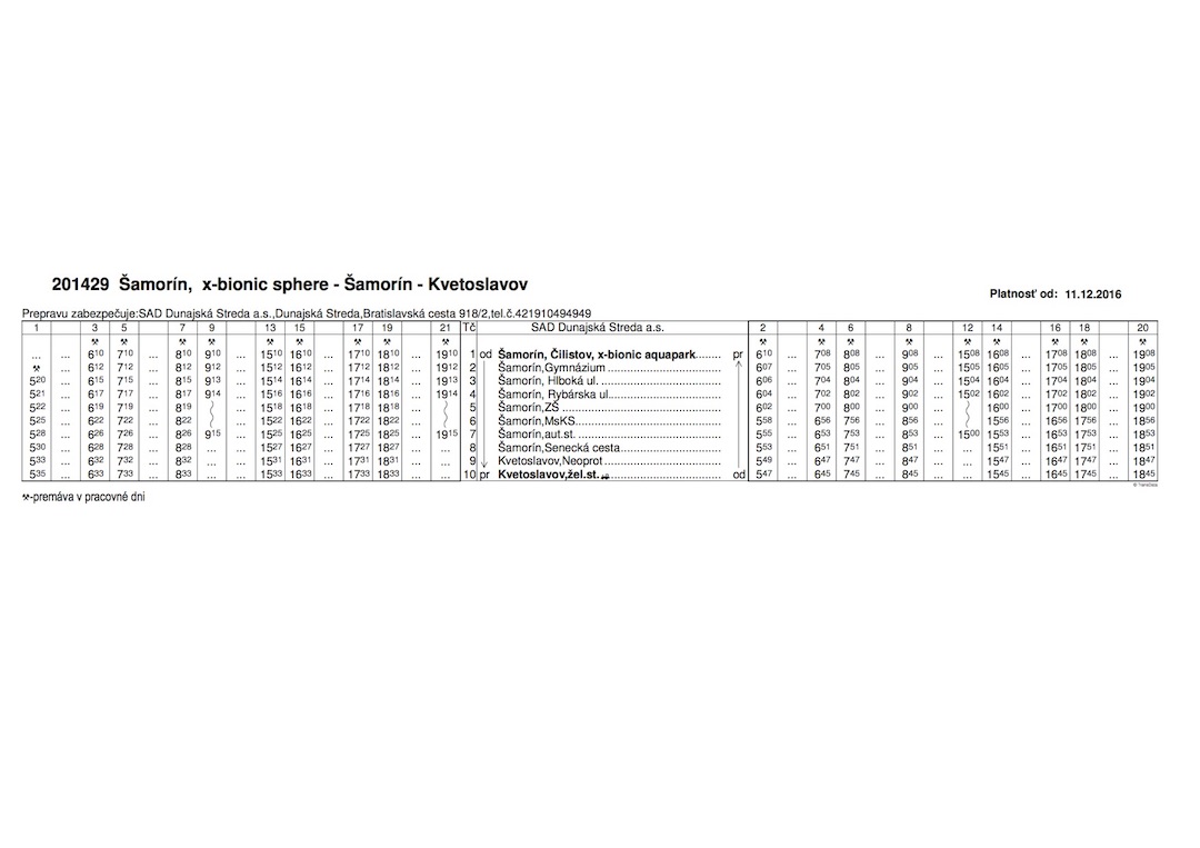 ,,K 11. decembru 2016 sa zrušili nevyužívané spoje v poludňajších hodinách počas pracovného dňa a komplet sa zrušila premávka v sobotu, nedeľu a vo sviatok, keď o prevádzku spojov nebol záujem,” uviedol Anton Ladziansky zo spoločnosti SAD Dunajská Streda.