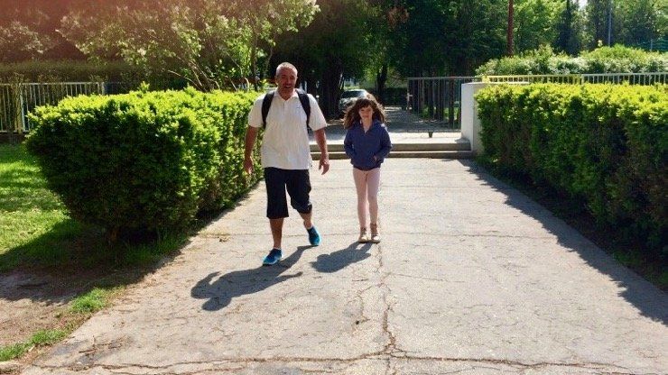 My sme sa rozhodli podporiť Rodičovské združenie pri ZŠ M. Bela, keďže naše dvojičky tu nastúpili v septembri 2016 do 1. triedy. Dali sme si „úlohu“, že ako rodina prejdeme pešo od prístavu kompy Kyselica až do ZŠ M. Bela v Šamoríne, a to v deň štátneho sviatku 1. mája.