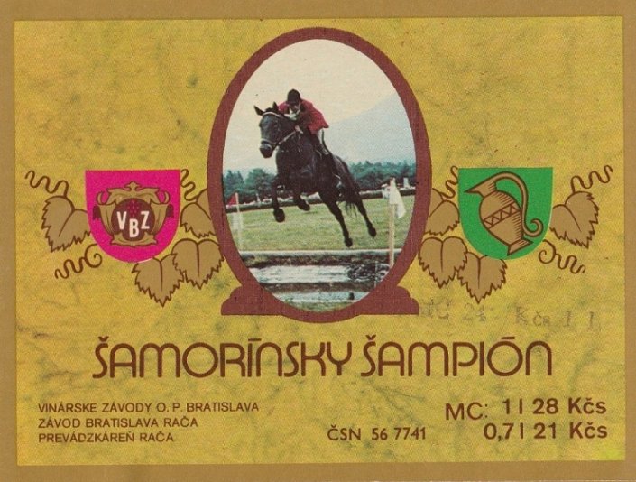 Etiketa vína Šamorínsky šampión dorábaného v šamorínskom vinárskom závode