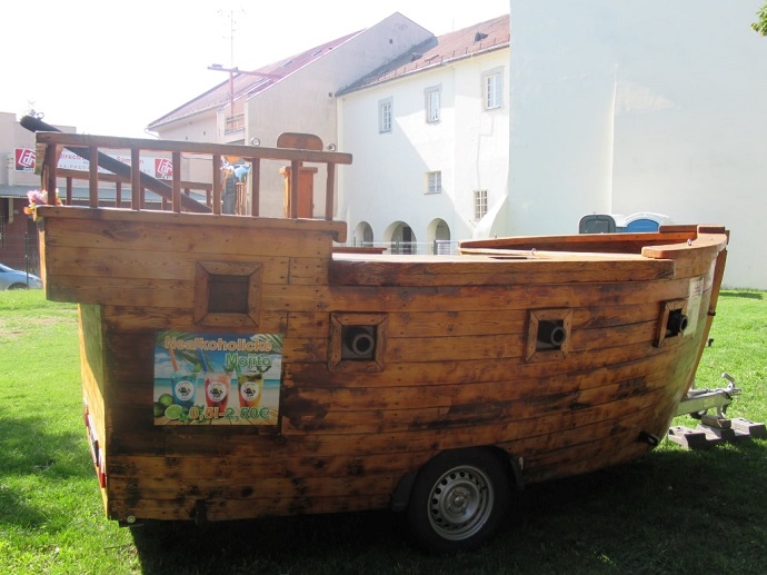 Mobilný bar Petra Horvátha, majiteľa Sport pubu, je takisto dielom arch. Borisa Mintcheva (foto Janka Biskupičová)