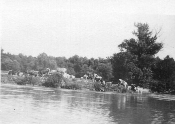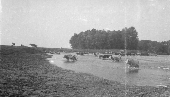 Dobytok sa vyháňal na plytčiny pri brehu Dunaja (Zdroj: archívny fond Inštitútu Fórum pre výskum národnostných menšín, Bibliotheca Hungarica Šamorín)