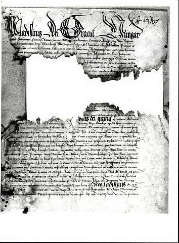 2. časť - Listina Vladislava II. Jagelovského, ktorou Šamorín stráca svoje výsadné postavenie kráľovského mesta.