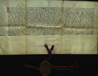 Listina potvrdzujúca, že bratia Rozhanovci ručia za dlhy svojich príbuzných, preto Šamorín dávajú do zálohu Ladislavovi Hunyadimu