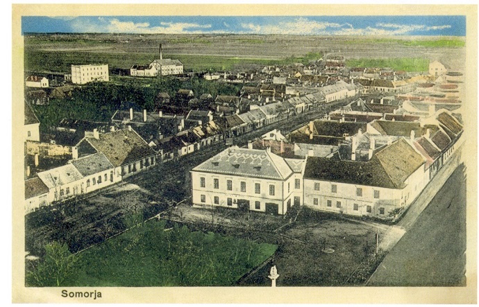 Pohľadnica vydaná po roku 1912. Oproti predchádzajúcim pribudol valcový mlyn a elektráreň vyrábajúca jednosmerný prúd a synagóga, ktorej stavbu inicioval prvý šamorínsky rabín Samuel Austerlitz