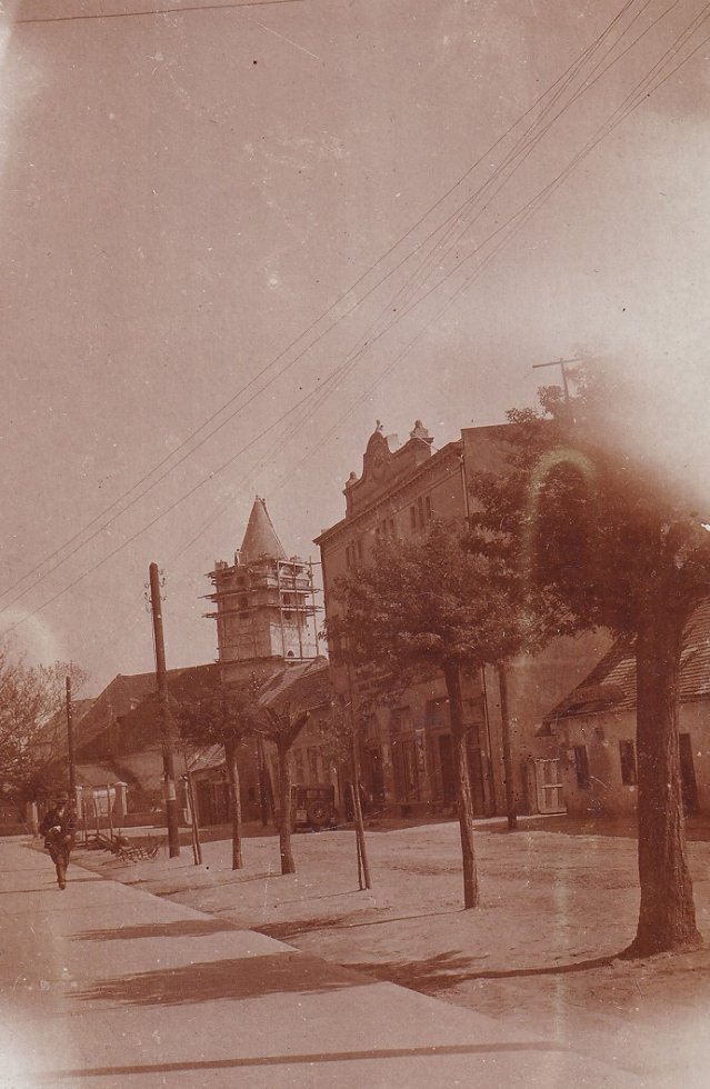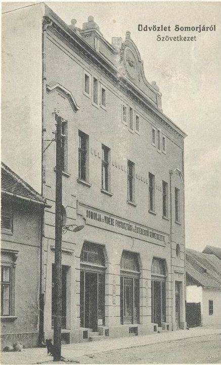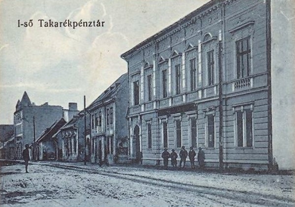 Potravný a úverový ústav Hangya (Mravec) postavený na mieste dnešného Obchodného domu Jednota. Budova postavená v roku 1894 vynikala nádherne zdobeným priečelím, jej vyvýšené povalové priestory slúžili ako sklad. V pozadí stojí najstarší kostol, dnes majetok kalvínskej cirkvi.