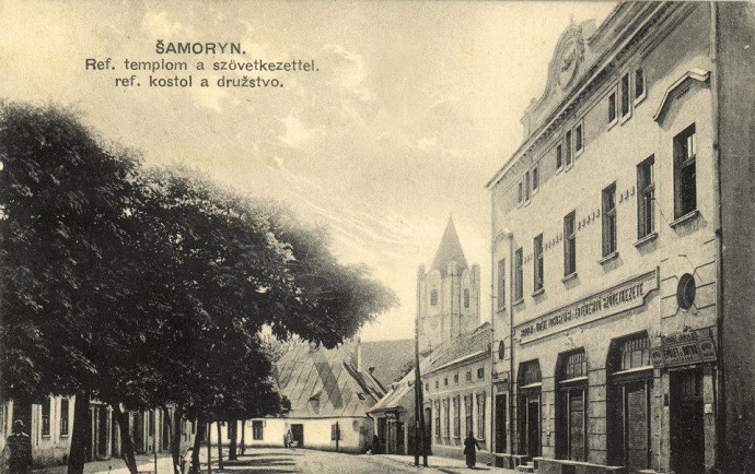 Fotografia (zdroj: Somorjai lakosok régi képei) pochádza z roku 1931, kedy sa pristúpilo k rozsiahlej prestavbe kalvínskeho kostola. Zväčšili sa dve južné okná svätyne a vybudoval sa západný vstup do veže. Na južnej stene boli obnovené slnečné hodiny a opravilo sa tiež murované oplotenie. Vo vstupnej časti pribudla pamätná tabuľa padlým Šamorínčanom v prvej svetovej vojne a v južnej lodi mramorová tabuľa s vytesanými významnými medzníkmi v dejinách kostola.