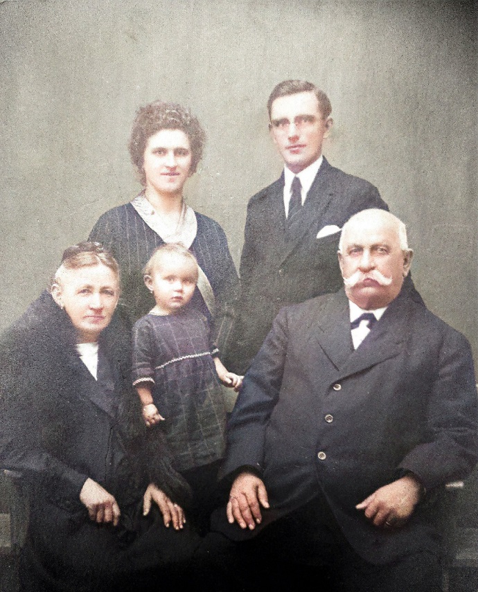 Fotka rodiny Károlya Franka s manželkou Zsuzsanou, dcérou Jankou, s manželom Františkom Němcom a ich dcérou Idou Němcovou (vydatou Langáčkovou) (Zdroj: archív rodiny Hargašovej)