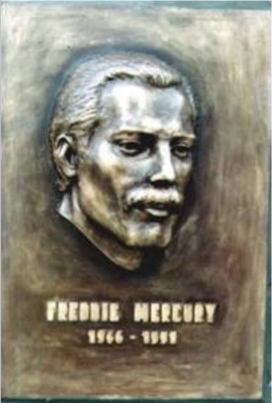 Pamätná tabuľa Freddieho Mercuryho v spomienkovom parku rockových hviezd