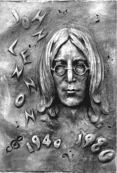 Reliéf Johna Lennona v parku rockových hviezd