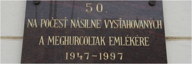 7. september Pri príležitosti 50. výročia vysídlenia 148 Maďarov do Maďarska a deportácií 80 Maďarov do Českej republiky bola pod záštitou viceprimátora Jánosa Fóthyho na priečelí Mestského úradu odhalená pamätná tabuľa. Pri tejto príležitosti bol zverejnený aj zoznam vyše 330 Šamorínčanov, ktorých vysídlili. Zoznám uvádza aj miesta, kam odišli. Najviac rodín vysídlili do obcí Szigetbecse (22 rodín), Rajky (14 rodín), do obce Dunabogdány (10 rodín) a do Mosonmagyaróváru (6 rodín). Mnohí Šamorínčania boli vysťahovaní aj na vzdialenejšie miesta, medzi inými do Kecskemétu či Pécsu.