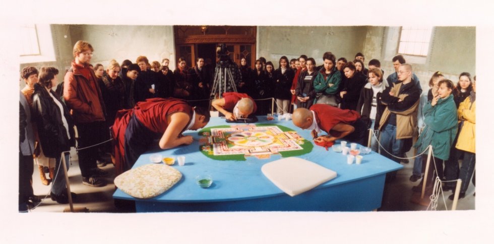 16. až 21. marec 1999. Interiér šamorínskej synagógy sa stal na niekoľko dní „slovenským Tibetom“. Štyria tibetskí mnísi vytvorili pri posvätnom rituáli magický symbol z farebného piesku, tzv. mandalu Chenrezing (pozn.: mandala je jedným zo symbolov budhizmu predstavujúci starobylý symbol jednoty a rovnováhy). Samotnému náboženskému obradu predchádzala duchovná hudba tibetských mníchov sprevádzaná nekonečným odriekavaním mantier monotónnym „mručivým“ hlasom s hlbokými vibráciami. Svojrázny tibetský vokálny prejav je známy svojimi alikvótnymi hrdelnými spevmi.