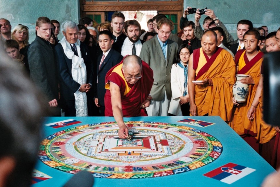 Najvyšší tibetský duchovný vodca Dalajláma XIV. pri obrade sypania