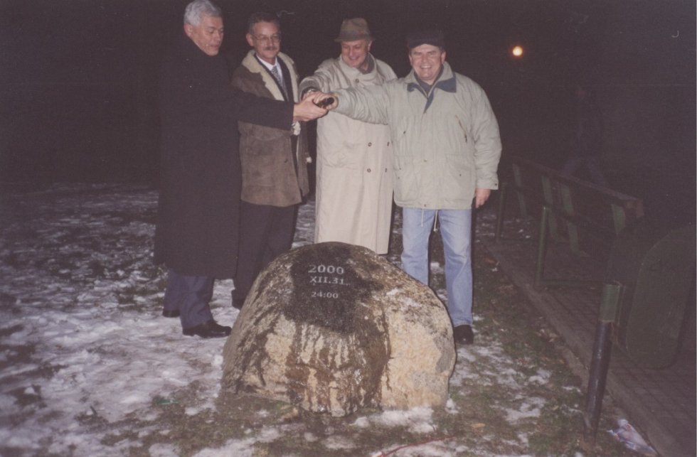 31. december. Predstavitelia mestskej samosprávy umiestnili do mestského parku skalu s pamätnou tabuľou pripomínajúcu milénium. Do umelohmotnej rúry pod skalou vložili fľašu, do ktorej uložili mapu mesta, mestskú zástavu, mestský erb, menoslov predstaviteľov mestskej samosprávy a miléniové decembrové číslo mesačníka Šamorín a okolie. Autormi nápadu boli poslanci Mestského zastupiteľstva Alfréd Csáder a Peter Nagy.