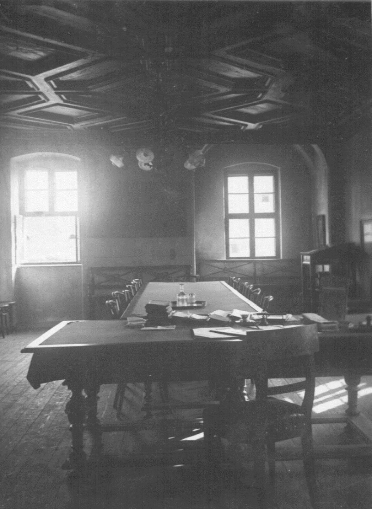Zasadacia miestnosť radnice, v ktorej sa prijímali dôležité rozhodnutia. Za vrchstolom sedel richtár a po bokoch dvanásť prísažných.