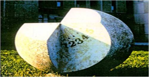 Kamenné slnečné hodiny v parčíku pred Mestským kultúrnym strediskom, dielo akademického architekta Pavla Mikšíka
