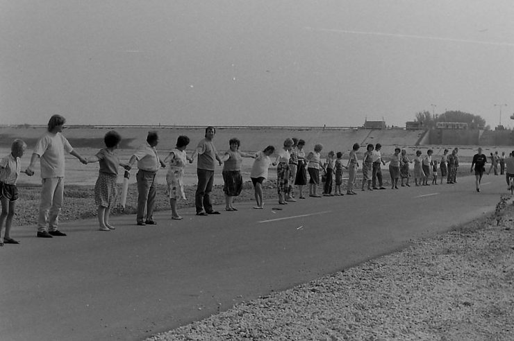 Na hrádzach od Hainburgu až po Komárno sa na výzvu občianskej iniciatívy Euroreťaz v živej reťazi zhromaždilo niekoľko tisíc ľudí, aby tak vyjadrili nesúhlas s dokončením vodného diela.