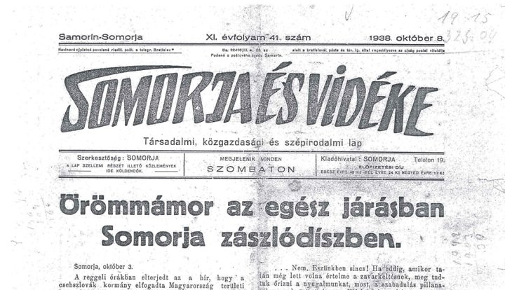 2. november. Podpísaním Viedenskej arbitráže pričlenili Šamorín k Maďarsku. Prvý raz sa dostal pod správu Komárňanskej župy, ktorá mala celkom 6 okresov, vrátane šamorínskeho. Za mestom, smerom do Bratislavy, postavili hranicu. Boli zrušené školy s vyučovacím jazykom slovenským. Národnú školu na Dlhej ulici, postavenú z prostriedkov Slovenskej ligy, začlenili pod správu Komárňanskej župy a vyhlásili za majetok maďarského štátu. Takisto zatvorili aj slovenské triedy v meštianskej škole.