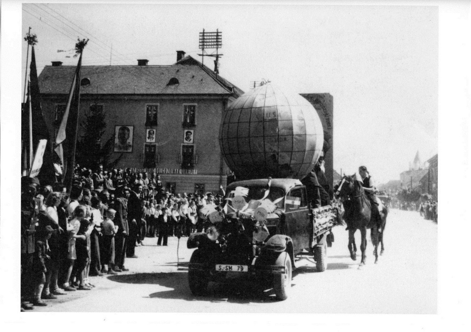 Veľkolepé oslavy 1. mája sa niesli v duchu dobovej propagandy v polovici 50. rokov.