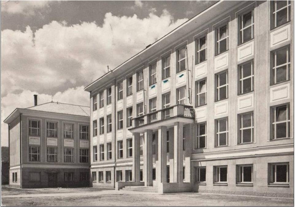 Nová budova školy, v ktorej sídlili až štyri školy, dnes ZŠ Mateja Bela. Na mieste, kde dnes vedie pri škole cesta smerom na Záhradnícku, sa pôvodne nachádzal parčík v tvare trojuholníka.