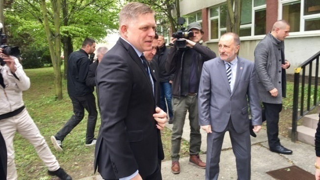 Premiér Robert Fico na návšteve Gymnázia M. R. Štefánika s primátorom Šamorína Gabrielom Bárdosom