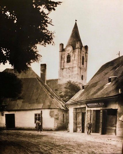 Najstaršia škola v meste (vľavo) sa pôvodne nachádzala pri najstaršej, južnej bráne na konci Radničnej (Zdroj: Inštitút Fórum pre výskum národnostných menšín, Bibliotheca Hungarica Šamorín)