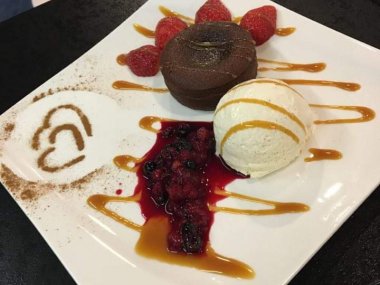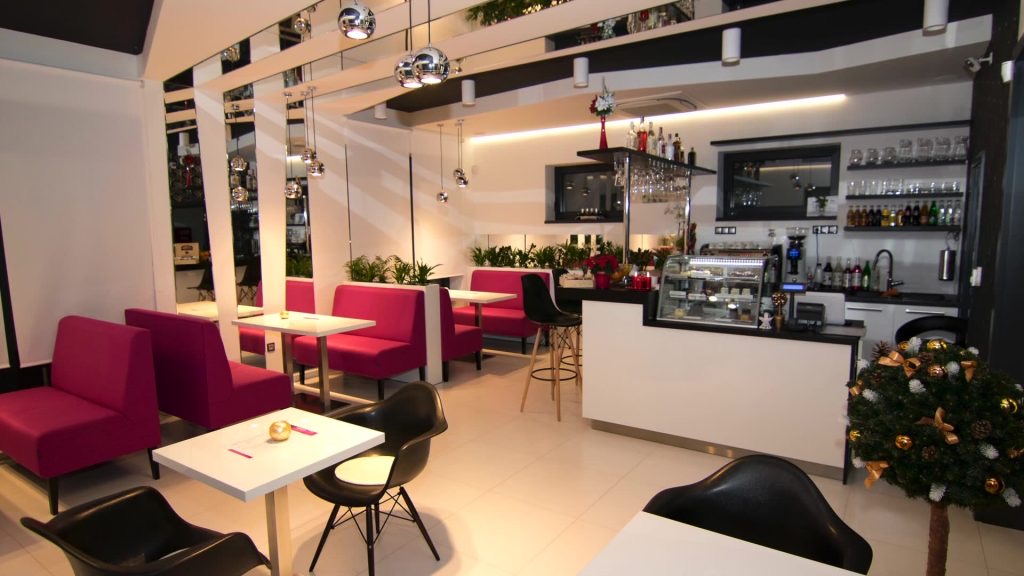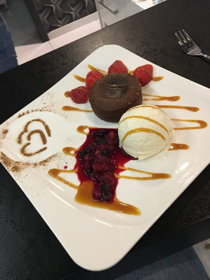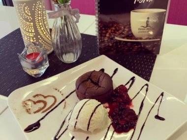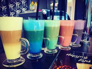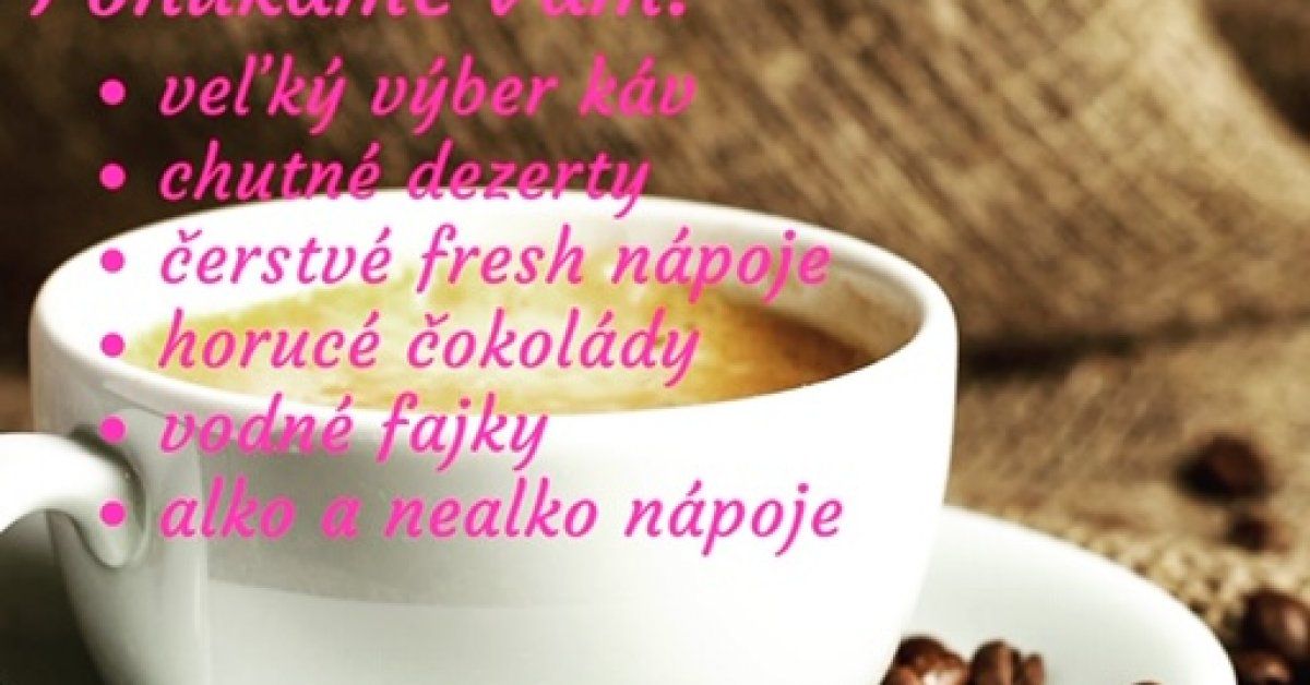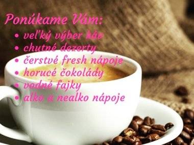 Kaviareň ponúka farebné Latte , vodné fajky, veľký výber chutných zákuskov ako aj vlastnej výroby alebo čokoládový fondán na počkanie.