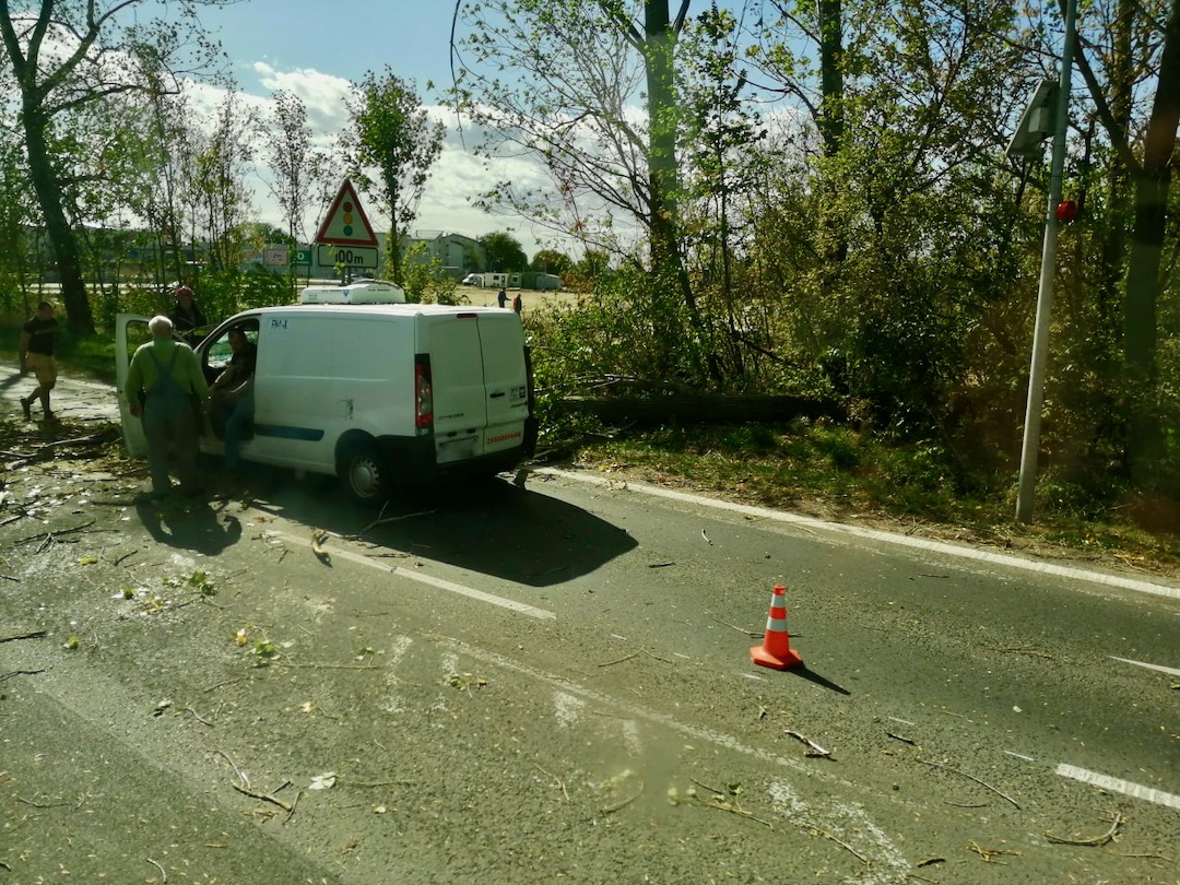 Na I/63 na vstupe do Šamorína padol strom na bielu dodávku a poškodil jej prednú časť. Na miesta zasahovali šamorínski hasiči a na ceste sa tvorili zhruba desaťminútové kolóny.