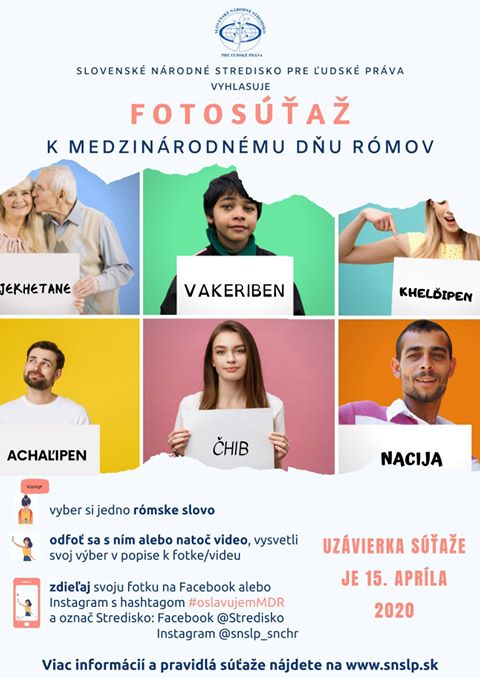 Stredisko vzdáva hold presadzovaniu a rozvoju rómskeho jazyka a pri príležitosti Medzinárodného dňa Rómov spúšťa fotosúťaž. Úlohou súťažiacich bude zverejnenie fotografie alebo videosekvencie s odkazom v rómskom jazyku, ktorú súťažiaci a súťažiace uverejnia na svojich sociálnych sieťach s hashtagom #oslavujemmdr. Snahou súťaže je rozšíriť slovnú zásobu majoritnej spoločnosti o nové rómske slová, vzbudiť záujem o tento dávny a zaujímavý jazyk a prispieť tak aspoň čiastočne k narušeniu komunikačnej bariéry v našej spoločnosti. „Jazyk je jedným z národotvorných prvkov a ten rómsky v sebe zlučuje nezlomný odkaz bohatej a unikátnej kultúry s asimiláciou vynútenými presahmi zblížených kultúr. Jeho slovná zásoba je zrkadlom historických snáh Rómov o zachovanie sa ako národa a zároveň o ich existenciu ako takú. Majoritná spoločnosť by ho nemala vnímať len prostredníctvom slov gadžo a bašavel“, dodáva Tomáš Földes, dočasne poverený vedením Strediska. Bližšie informácie o súťaži sú k dispozícii na webstránke Strediska www.snslp.sk a na stránkach Strediska na sociálnych sieťach Facebook a Instagram.