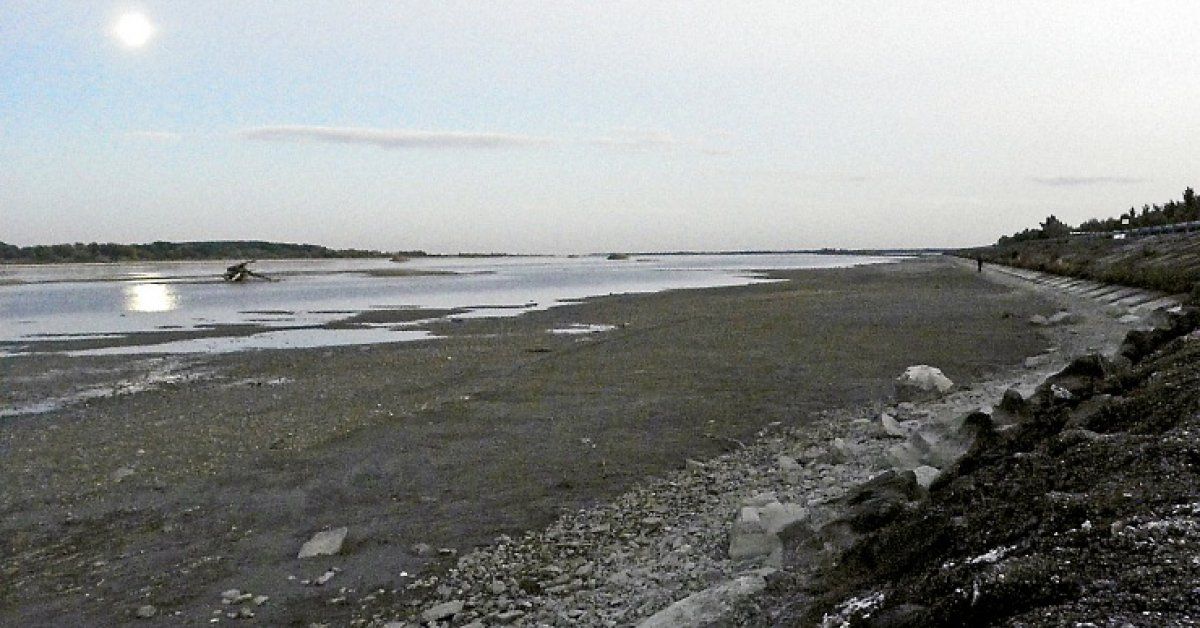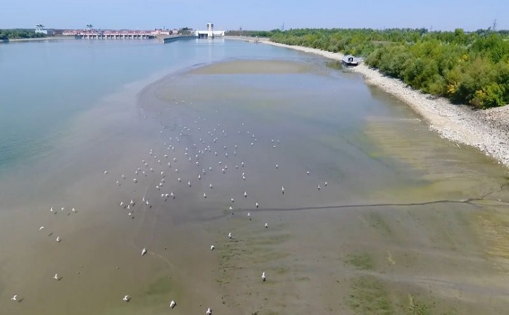 Za Bratislavou sa zo starého koryta Dunaja napajá riečna diaľnica - prívodný kanál Vodného diela Gabčíkovo. Pod jeho stupňom s plavebnými komorami a elektrárňou je teraz taká extrémne nízka vodná hladina, že brehy sú už takmer úplne obnažené.