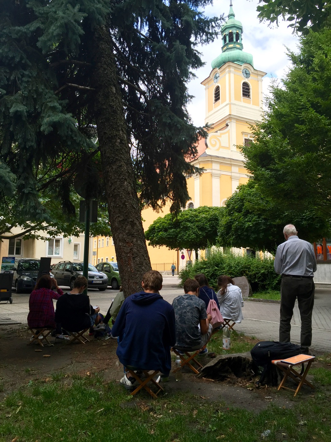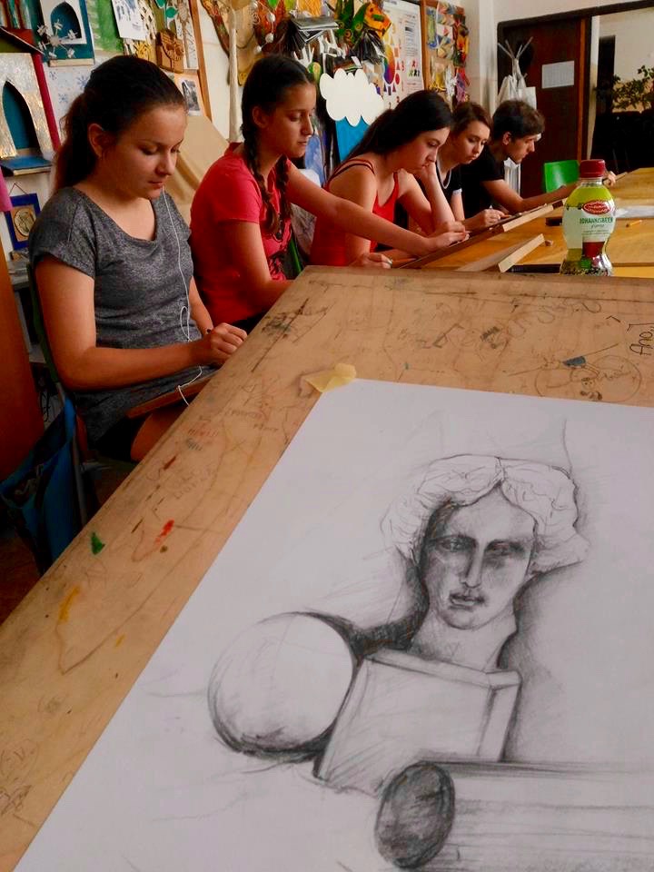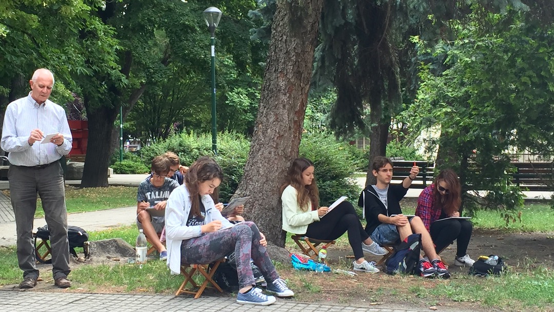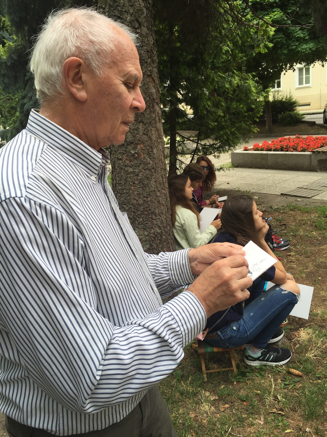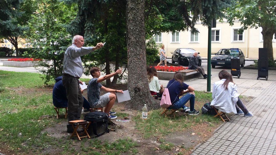 Tohtoročného workshopu sa zúčastnila skupinka šiestich talentovaných študentov školy. ,,Sú veľmi šikovní,“ povedal Grigory Gurevich. Dnes ich vzal do parku na Hlavnom námestí, kde si robili skicu kostola. ,,Je to pre nich veľká výzva. Hoci sa to nezdá, je ti náročné,“ vysvetľoval.