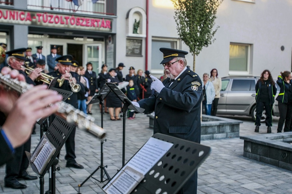 „Výstavba garáže a obnova nádvoria sa začala ešte za vedenia Imricha Farkasa a bola dovŕšená pod vedením veliteľa Ľudovíta Ürgeho“ – spomínal na slávnosti Alexander Kocsis, predseda zboru. Samotná garáž bola postavená a nádvorie bolo obnovené dobrovoľníckou prácou hasičov, zásahové vozidlo Dennis Sabre bolo tiež úplne obnovené a nanovo vybavené. Odovzdali sa aj dve vysokovýkonné kalové čerpadlá kúpené spoločne mestom a dobrovoľnými hasičmi.