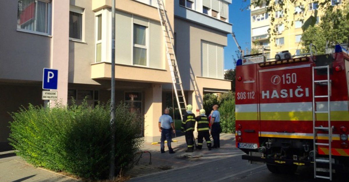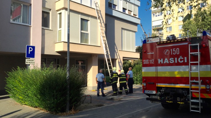 Pomocou vysúvacieho rebríka sa hasiči dostali na balkón bytu a cez otvorené okno spolu s majiteľom vnikli do bytu.