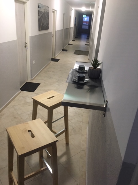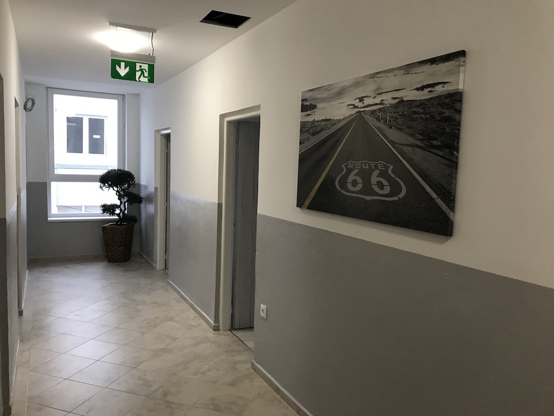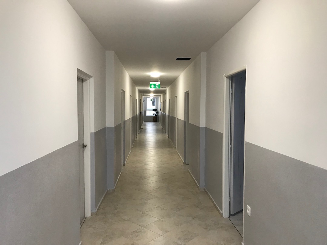 Sociálne vybavenie je spoločne na chodbe, ktoré zahŕňa 6 spŕch, 6 záchodov, 4 umývadla, 3 pisoáre. Kuchyňa je umiestnená na chodbe, ktorá je kompletne vybavená / mikrovlnou rúrou, rýchlo-varnou kanvicou a veľkou chladničkou.