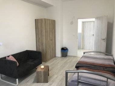• posteľ, skriňa, stôl, dve stoličky, stolová a nočná lampa, pohodlná dvojsedačka, konferenčný stolík. Lôžko je vybavené s kvalitným novým matracom, ktorý zabezpečí kvalitný spánok.