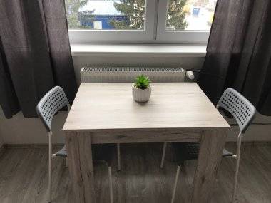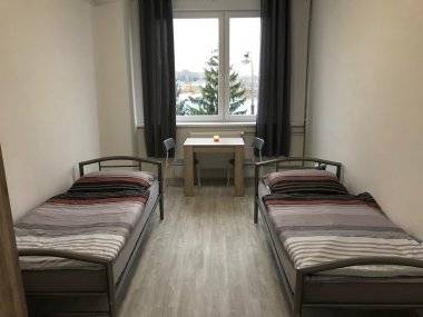 • dve postele, skriňa, stôl, dve stoličky, stolová a nočná lampa. Lôžka sú vybavené s kvalitnými novými matracmi, ktoré zabezpečia kvalitný spánok.