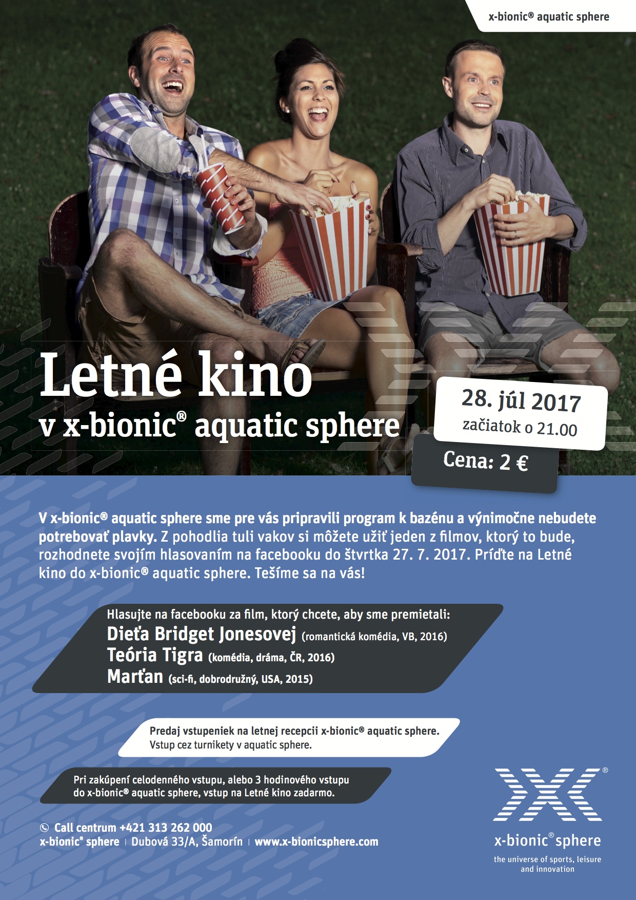 Pri zakúpení celodenného vstupu, alebo 3 hodinového vstupu do x-bionic sphere, vstup na letné kino zadarmo.