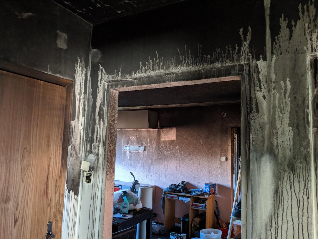 • odstránenie zadymených stierok na stenách a vymaľovanie