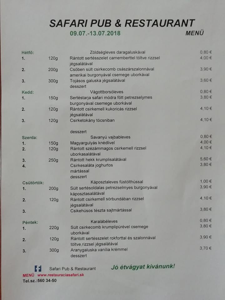 Ebéd menüA SAFARI PUB & RESTAURANT étterem ebéd menüje: július 9-től 13-ig2018.7.9. 05:54Peter GáborSAFARI PUB & RESTAURANT étterem heti ebéd menüje:Megosztás:Hasonló cikkek A Bella Italia Pizzéria étterem ebéd menüje: december 17-től 21-ig2019.6.17. 06:02 A Pisti konyhája étterem ebéd menüje: december 17-től 21-ig2019.6.17. 06:00 A SAFARI PUB & RESTAURANT étterem ebéd menüje: december 17-től 21-ig2018.12.16. 20:56 A Bistrò étterem ebéd menüje:december 17-től 21-ig2018.12.16. 20:47 A SAPA vietnami bisztró ebéd menüje: december 17-től 23-ig2018.12.16. 20:34 A Bella Italia Pizzéria étterem ebéd menüje: november 26-tól 30-ig2018.11.26. 07:50