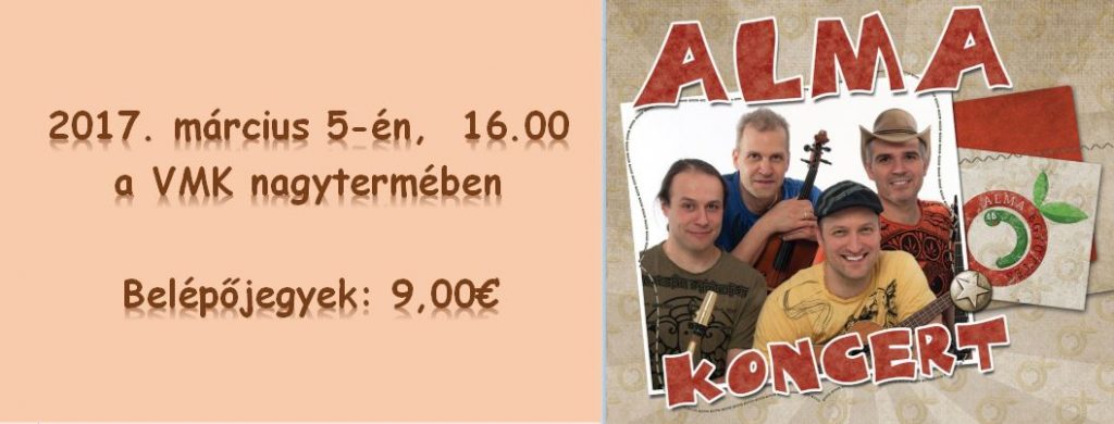 Nyerjen ingyen belépőt az Alma együttes koncertjére, amely március 5-én 16:00 órai kezdettel kerül megrendezésre a  somorjai VMK-ban.