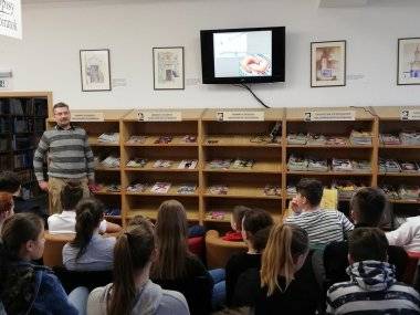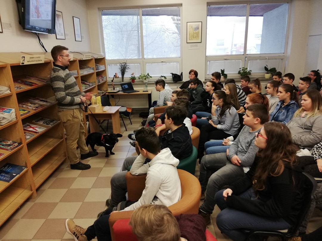 A Corvin Mátyás Alapiskola hetedikes tanulóinak mutatta be könyvét Kacsinecz Krisztián irodalmár és újságíró.